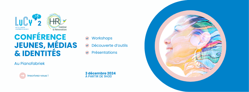 Pour clôturer son projet LuCy (Lutte contre la cyber-violence), Habitat & Rénovation organise une journée sur les enjeux identitaires des jeunes en ligne et hors-ligne le mardi 3 décembre à partir de 9h30 au Pianofabriek (rue du Fort 35, 1060 Saint-Gilles).